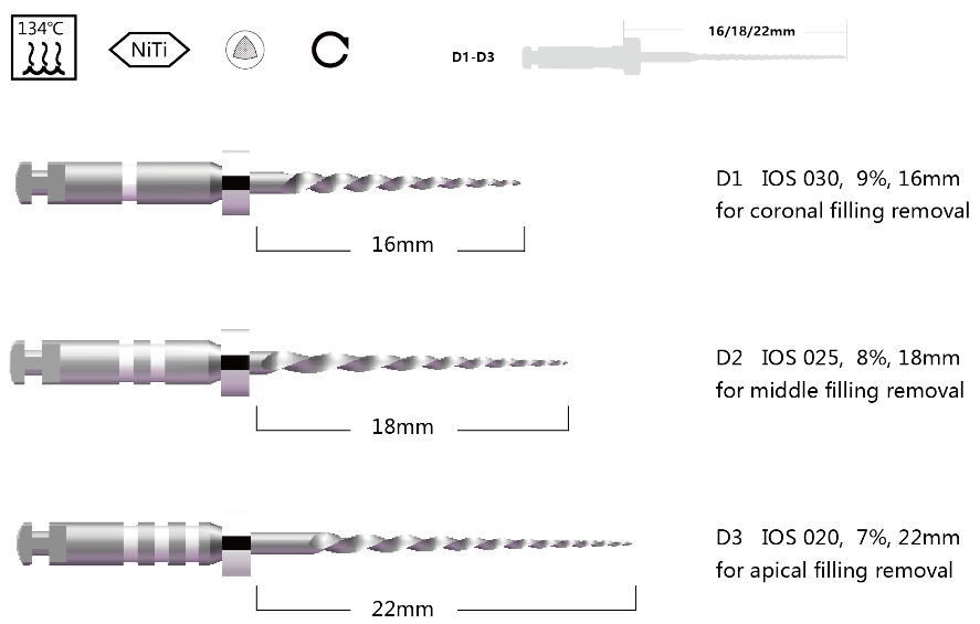 Acele rotative sunt produse dintr-un aliaj Ni-Ti din noua generatie MaxTech ( ace cu memorie , ace care in timpul sterilizarii, sub influenta caldurii, se vor indrepta ) .