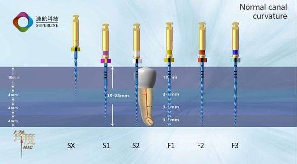• Acele rotative sunt produse dintr-un aliaj Ni-Ti din noua generatie MaxTech ( ace cu memorie , ace care in timpul sterilizarii, sub influenta caldurii, se vor indrepta ) .