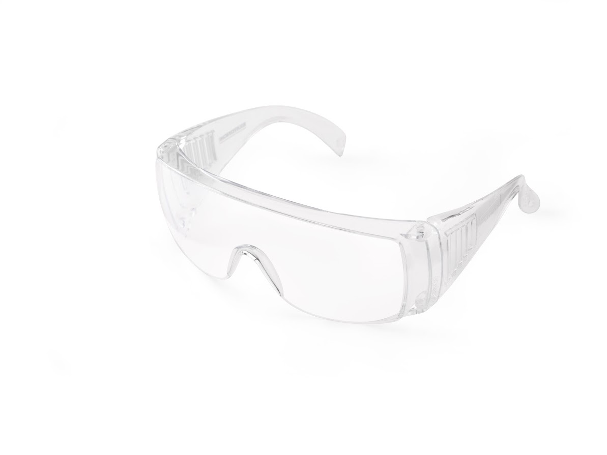 Ochelari de protectie pentru medici sau pacienti, cu lentile din policarbonat, cu sistem de ventilatie a aerului incorporat in ramele laterale.